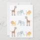 Elefante adorável de fileira, design de safari de leão e girafa, que é perfeito para sua festa de aniversário de amante de os animais. Você pode personalizar facilmente o convite para seu gosto alterando qualquer texto. Sexo neutro para um menino ou menina. Arte original de Nic Squirrell. O reverso apresenta um padrão de bébé correspondente.