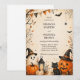 A playful and atmospheric design inspired by autumn festivities, featuring charming illustrated elements such as pumpkins, a curious black cat, a friendly ghost, and whimsical decorations. Warm earthy tones and soft textures create a cozy seasonal feel, while details like lantern light, bats, and foliage add depth and storytelling. The composition blends cute and spooky aesthetics into a balanced, inviting, and visually engaging design.