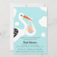 Welcome your bundle of joy with this adorable stork baby shower invitation! Featuring a sweet illustration of a stork carrying a smiling baby through fluffy white clouds on a soft sky-blue background, this whimsical design is perfect for celebrating a baby boy. The mix of playful artwork and modern typography creates a timeless and cheerful feel that guests will love. Personalize easily with your shower details for a memorable and heartwarming celebration.