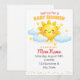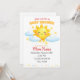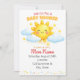 A cute sunshine illustration featuring a smiling sun and fluffy clouds with glowing yellow stars. The playful colors and cheerful style make this sunshine design perfect for creating a joyful baby celebration atmosphere.