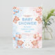 Convite Cute Teddy Bear & Blue Pink Balloon Baby Shower