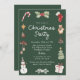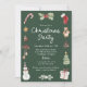Celebrate the holidays in style with this cute watercolor Christmas party invitation surrounded by hand-painted festive illustrations. The border showcases a candy cane, holly berries, red stocking, teddy bear, pinecone, Christmas tree, ornament, snowman, wrapped gift, and ribbons — all rendered in a soft watercolor style. Set against a dark green background, “Christmas Party” appears in white handwritten script above your event details, creating a timeless and cozy holiday look. Perfect for family or kids’ Christmas parties, festive dinners, and joyful seasonal gatherings.