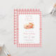 Celebre o seu primeiro aniversário de "Cutie Pie" com este adorável convite para primeiros aniversarios Rustic Pink Gingham! Apresentando um doce design de torta aquosa, detalhes macios e rústicos, e um charmoso fundo de gingham rosa, este convite é perfeito para uma festa acolhedora com tema de torta. Personalize facilmente o texto com o nome, a idade e os detalhes da festa do seu filho para criar uma manutenção única para a sua celebração.
