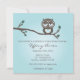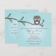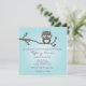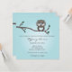 Uma coruja muito fofa empoleirada em um galho anunciando os detalhes da festa. Este convite pode servir para um chá de bebê ou qualquer outro compromisso como casamento ou aniversário. Também é muito moderno e na moda.