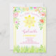 Este convite de festa de aniversário doce e ensolarado apresenta um lindo sol em aquarela, flores e grama, um fundo amarelo ensolarado e texto em rosa suave. Perfeito para uma festa ensolarada em qualquer época do ano e o início de uma festa de sol maravilhoso! Um verso com padrão floral bonito está incluído.