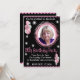 Convite da foto do aniversário das meninas rosa quente personalizado e preto do 9o