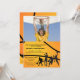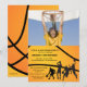 Um convite à moda para um quem ama o jogo. As características de design um fundo do basquetebol com os quatro jogadores da silhueta e uma grande janela da foto. O reverso é uma imagem desproporcionado do basquetebol. O cartão é fácil de personalizar com seus fraseio, pia batismal, cor da pia batismal e escolha de seis tipos de papel.