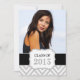 Diversão e simples do lançamento da Classe 2013 e do cartão de convite de festas do formando. Um design elegante com uma linha preta, uma cinza e um padrão de chevron branco, uma etiqueta com o texto "classe de 2013" e a sua foto de formando. A forma perfeita de convidar seus convidados para a festa de formatura da sua filha. Design de Elke Clarke©.