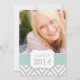 Diversão, garota, anúncio simples da Classe 2014 e cartão de convite de festas do formando. Um design elegante com uma linha verde-menta, uma cinza e um padrão de chevron branco, um rótulo com o texto "classe de 2014" e sua foto de formando. A forma perfeita de convidar seus convidados para a festa de formatura da sua filha. Design de Elke Clarke©.