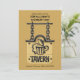 Um convite "masculino" maravilhoso com uma placa de taverna com uma caneca de cerveja. O fundo é dourado escuro e a placa é dourada clara e está pendurada em uma corrente preta grossa. Perfeito para uma celebração masculina.