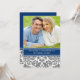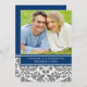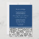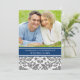 Convites feitos sob encomenda do modelo da foto da renovação elegante do voto de casamento no teste padrão floral escuro chique e elegante e o branco do vintage do damasco clássico dos azuis marinhos, do cinza de carvão vegetal com texto inteiramente customizável incluir seus detalhes da cerimónia da renovação do voto. Contacte-nos para uma cor feita sob encomenda.