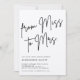 Celebrar a transição da Senhorita para a Sra. com estilo e graça com esses convites de chá de panela lindamente elaborados. A design minimalista e moderna apresenta uma caligrafia elegante em caracteres clássicos, criando um eterno, sofisticado e visual chic. Perfeito para a futura noiva que quer anunciar suas núpcias em breve de forma elegante e subestimada. O design minimalista é versátil e pode ser facilmente coordenado com qualquer tema chá de panela, fazer ser uma escolha ideal para a noiva moderna. Quer você esteja hospedando um chá de panela em casa ou em um local, esses convites irão dar o tom para uma celebração inesquecível. Mande-os sair hoje e prepare-se para ajudar a noiva a comemorar a sua excitante transição da Miss para a Sra.!