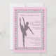 Um convite cor-de-rosa, quadro com rosas, que caracterize a silhueta de uma bailarina. Apropriado para o aniversário de alguma bailarina da idade ou para um considerando da dança. O cartão é fácil de personalizar com seus fraseio, pia batismal, cor da pia batismal e escolha de seis tipos de papel.