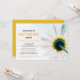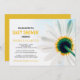 Convite de chá de bebê fofo com uma foto mostrando uma margarida, e fontes amarelas e pretas.
