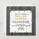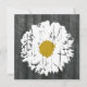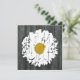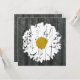 Um convite de casamento com um fundo de madeira de barnwood na frente e atrás. A frente mostra uma ilustração de uma margarida com o efeito de tinta rachada. O lado oposto tem o quadrado branco rachado. Personalize com detalhes do evento. A redação é da noiva e do noivo junto com os pais.