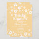 Chá de panela amarelo margarida inspirado retroativamente com margaridas do estilo 70 e fontes e cores de vaivém.