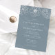 Convites de casamento florais elegantes, com uma borda de flores brancas delicadas e um fundo azul empoeirado. Personalize os convites para casamentos florais azuis empoeirados com seus nomes e detalhes de casamento em letras brancas com sotaques de escrita de caligrafia. Projetado para coordenar com a nossa coleção de casamento de Dainess Floral.