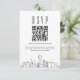 Um cartão de código de QR rsvp de casamento com uma bela linha estilizada representando a cidade de Dallas, Texas. Substitua o código QR por um que apresente um link para o seu site para ajudar a facilitar a resposta ao evento de seu casamento para seus futuros convidados.