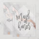 UM CARTÃO DE DAMA DE HONRA DE EFEITO MÁRMORE E OURO ROSA MODERNO E CLÁSSICO COM LINHAS GEOMÉTRICAS E FONTE DE LETRA SCRIPT EM ALTA. PARTE DE UMA COLEÇÃO
