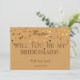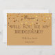 Este cartão de convite para damas de honra com glitter verde e dourado de 5" x 7". É perfeito para a noiva que ama cores douradas e bolinhas. É uma maneira divertida de convidar sua amada ou amiga para fazer parte do seu casamento.