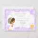 Este convite da Primeira Comunhão Damask apresenta uma adorável menina de cabelo marrom em um primeiro vestido de comunhão sagrado.