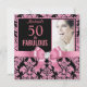 Damasco preto brilhante brilhante Elegante| 50 convites para o aniversário.Cinquenta e fabuloso! Um belo e elegante Convite de aniversário brilhante floral, cor-de-rosa-quente, 50º, você pode personalizar e enviar sua cinquenta celebração de festa de aniversário. No centro, arco rosa bonito. Substitua a foto da amostra pela sua. As palavras "50 e Fabuloso" são definidas por tifografia popular. Você pode personalizar fontes de script e cores de fonte no design. Excelente para todas as ocasiões muda de idade. A Festa de aniversário convida o modelo que você pode personalizar com seus próprios detalhes e sua idade. Modelo feminina Bonito para 15, Sweet 16, Quinceanera, 18º, 20, 21 ruas, 30, 40º, 50º, 60º, 70, 80,, 100º, raparigas e mulheres fabulosas. Note que esta design é um efeito fotográfico impresso sem brilho, arco, joias ou elementos reais! 3302h