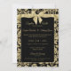 O convite de casamento impresso para damasco e design preto e Dourado, com todas as informações importantes, incluindo detalhes de recepção no convite principal. Vintage inspirou que o damasco de ouro é eterno, mas tenente, formal e romântico.