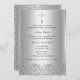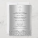 Convite Damasco prateado elegante e batismo cruzado/Natal