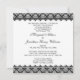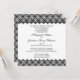 Este convite formal de casamento apresenta uma elegante cor damasco preta e branca com uma fronteira floral preta.