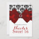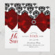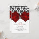 Convite Damasco Preto e Branco com Laço Vermelho Festa Gla