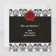 CONVITE DAMASCO PRETO E BRANCO, SELADO COM LACRE VERMELHO