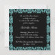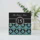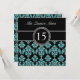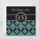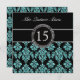 Feminino, o divertimento contudo os convites sofisticados de Quinceanera personalizaram o damasco preto com efeito azul IMPRESSO do brilho do azul ou do aqua da cerceta. Design por Elke Clarke©. Gráficos licenciados para o uso.