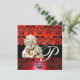 CONVITE DAMASCO VERMELHO, PRETO, BRANCO MONOGRAMA JOIA