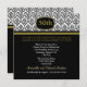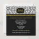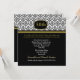 Um cartão tradicional quadrado em preto e dourado formal com um acabamento em damasco preto e branco e uma filigrana decorativa para QUALQUER ANO, suas iniciais ou uma data. Perfeito para uma celebração de aniversário de ouro ou de qualquer ano.