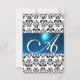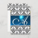 Convite DAMASK GEM MONOGRAM azul branco rsvp