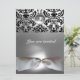 Convite DAMASK GEM STONE MONOGRAM fita branca cinza preto