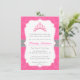 Celebre com mamães para ser, a chegada da menina, seu orgulho e alegria, com este convite de chá de uma menina elegante, clássica e chique princesa. A tiara vem com formas de coração e pequenos pedaços de joia e um interessante fundo de cor damasco rosa-quente. Um convite para realeza.