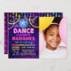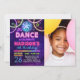 Convite de festas de dança de discoteca neon glow para meninas com foto.