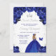 Este elegante e glamouroso e doce convite de 16 anos apresenta uma bela princesa com cabelo louro num vestido azul escuro. O texto combina o script manuscrito e as fontes sans serif modernas para um aspecto elegante e sofisticado. Os arranjos florais, borboleta e confete prateado criam a mistura perfeita de rústico e chic. Gráficos por www.etsy.com/uk/shop/SunflowerDayLove