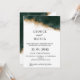 Inspired by abstract and artistic design trends, the watercolor border blends organic brush strokes with modern elegance, making it ideal for fall and winter weddings. The deep green tones symbolize timeless romance, while the gold details add a touch of glamour and refinement—perfect for black-tie, luxury, and upscale wedding themes.