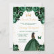 Este elegante e glamouroso e doce convite de 16 anos apresenta uma bela princesa com pele escura em um vestido verde-escuro. O texto combina o script manuscrito e as fontes sans serif modernas para um aspecto elegante e sofisticado. Os arranjos florais, borboletas e confete de ouro criam a mistura perfeita de rústicos e quicos. Gráficos por www.etsy.com/uk/shop/SunflowerDayLove