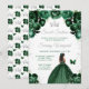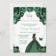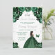 Este elegante e glamouroso e doce convite de 16 anos apresenta uma bela princesa com pele escura em um vestido verde-escuro. O texto combina o script manuscrito e as fontes sans serif modernas para um aspecto elegante e sofisticado. Os arranjos florais, borboleta e confete prateado criam a mistura perfeita de rústico e chic. Gráficos por www.etsy.com/uk/shop/SunflowerDayLove