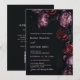 This elegant dark moody floral wedding invitation features purple and red peony flowers on a black background. Dark romantic aesthetic wedding invitation. With a scannable qr code on the backside.