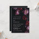 This elegant dark moody floral wedding invitation features purple and red peony flowers on a black background. Dark romantic aesthetic wedding invitation.