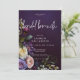 Este design de convite para chá de casamento apresenta um fundo roxo roxo roxo escuro e moderno com um belo spray floral de azul roxo, marrom, branco e rosado com folhagem verde escura. Clássico e elegante, este design pode ser usado em qualquer estação. Criado pela imprensa simplesmente de farmácia.