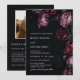 This elegant dark moody floral wedding invitation features purple and red peony flowers on a black background. Dark romantic aesthetic wedding invitation. With a scannable qr code and a custom photo on the backside.