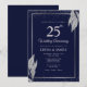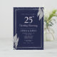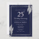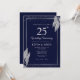 Convite Dark Navy Blue Silver Leaf Wedding Anniversary