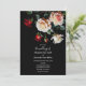Elegant dark pretty red and pink white rose on black background floral cottage core wedding Invitation