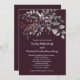 The florals are delicately layered, with silvery undertones that add a subtle shimmer against the deep backdrop. The overall design is vertically balanced and clean, allowing the botanical elements to frame the content without overwhelming it. It evokes a timeless charm—perfect for a celebration steeped in warmth and style.