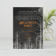 Coloque a cena para um momento maravilhosamente bom com nosso convite para o festival de Halloween de árvores góticas escuras e arrepiantes! Apresentando um fundo escuro que contrasta perfeitamente com árvores negras, lua de cheio, morcegos. Este design deve enviar arrepios pela sua coluna. As palavras "Festa de Halloween" são escritas numa fonte assustadora e coalhada de sangue que captura a essência da noite. Além disso, a design apresenta um belo poema assustador. Personalize com seus detalhes e dê o tom para uma noite de diversão fantasma.